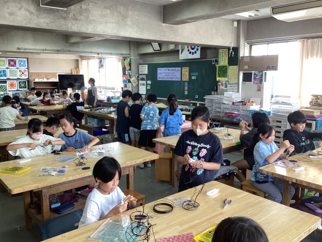 図画工作を行なっていたクラスは、「線と立体のストーリー」というテーマで、針金を切ったり、曲げたり、ねじったりして、製作をしていました。