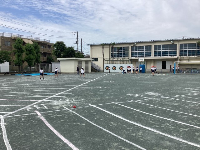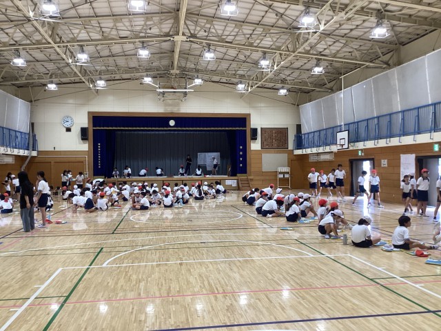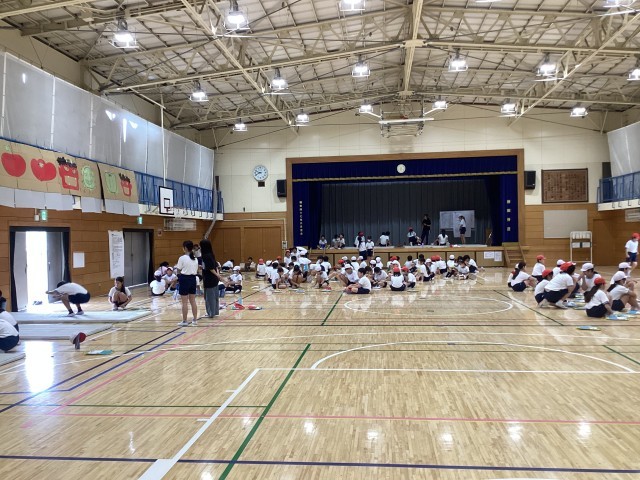 グラウンドではボール投げ、体育館では反復横とびや上体起こし等の体力テストを行いました。