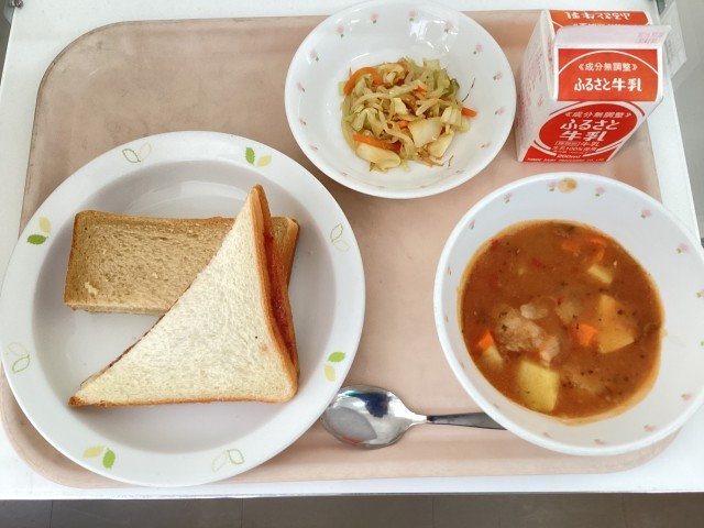 6月13日の給食 公開日 2025/06/13 更新日 2025/06/13 給食 【今日の献立】・2色サンド・トマトシチュー・ごまドレサラダ・牛乳【使用した食材の主な産地】にんにく/茨城 しょうが/高知 にんじん/茨城 たまねぎ/佐賀 はくさい/群馬 ねぎ/茨城 チンゲンサイ/茨城 きゅうり/埼玉 もやし/栃木 給食