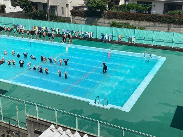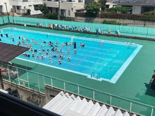 水の中で踊ったり、もぐったり、大の字になって浮かんだりと水に慣れる練習をしました。