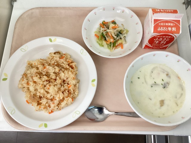 6月19日の給食 公開日 2025/06/19 更新日 2025/06/19 給食 【今日の献立】・ツナライス・フレンチサラダ・ポテトスープ・牛乳【使用した食材の主な産地】にんじん/和歌山 しょうが/高知 キャベツ/群馬 もやし/栃木 こまつな/埼玉 たまねぎ/佐賀じゃがいも/茨城 パセリ/千葉 りんご/青森 給食