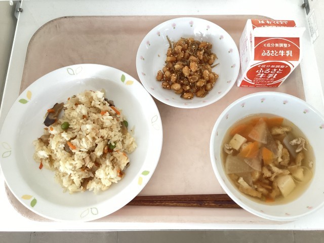 6月23日の給食 公開日 2025/06/23 更新日 2025/06/23 給食 【今日の献立】・とり五目ごはん・大豆とじゃこの甘辛揚げ・塩豚汁・牛乳【使用した食材の主な産地】にんじん/茨城 ごぼう/青森 だいこん/青森 じゃがいも/茨城 ねぎ/茨城 給食