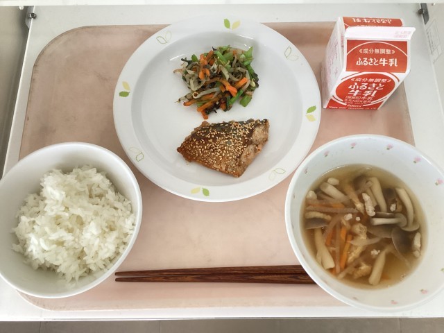 6月27日の給食 公開日 2025/06/27 更新日 2025/06/27 給食 【今日の献立】・有機米ごはん・魚のごま醤油焼き・野菜の磯香和え・沢煮椀・牛乳【使用した食材の主な産地】にんにく/青森 しょうが/高知 ねぎ/茨城 もやし/栃木 にんじん/千葉 こまつな/埼玉 だいこん/青森 しめじ/長野 給食