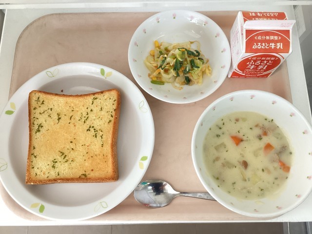 7月2日の給食 公開日 2025/07/02 更新日 2025/07/02 給食 【今日の献立】・ガーリックトースト・ビーンズシチュー・キャロットソースサラダ・牛乳【使用した食材の主な産地】にんにく/青森 パセリ/千葉 たまねぎ/愛知 にんじん/千葉 じゃがいも/茨城 キャベツ/群馬 こまつな/埼玉 もやし/群馬 給食