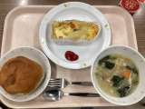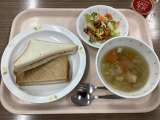 (今日の献立) ・ぶどうパン ・ABCスープ ・スペイン風オムレツ ・牛...