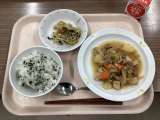 (今日の献立) ・わかめごはん ・肉じゃがのうま煮 ・もやしのごま風味 ...