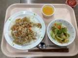 (今日の献立) ・五目チャーハン ・豆腐とわかめのスープ ・糸寒天サラダ ...