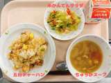 (献立) ・五目チャーハン ・糸かんてんサラダ ・中華スープ ・牛乳 五目チャ...