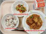 (献立) ・梅わかごはん ・生揚げのそぼろあんかけ ・野菜のおかかあえ ・牛乳 ...