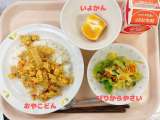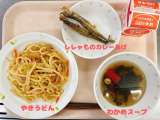 (献立) ・焼きうどん ・ししゃものカレー揚げ ・わかめスープ ・牛乳 ししゃ...
