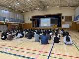 総合的な学習の時間に「笑って学ぶSDGs」の特別授業を行いました。 お笑い芸人の...