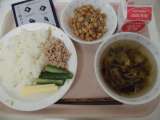 (今日の献立) ・ごはん ・吉野汁 ・ししゃものからあげ ・納豆 ・牛...