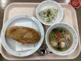 (今日の給食) ・きなこあげパン ・肉団子入り春雨スープ ・ツナサラダ ...