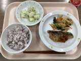 (今日の献立) ・ゆかりごはん ・さばの南蛮揚げ ・野菜のおかか和え ・...