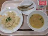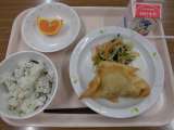 (今日の献立) ・ごまごはん ・中華スープ ・いかのピリ辛揚げ ・牛乳 ...