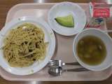 (今日の献立) ・和風スパゲッティ ・コンソメスープ ・メロン ・牛乳 ...