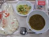 (今日の献立) ・ナン ・キーマカレー ・じゃがいものハニーサラダ ・牛...