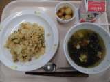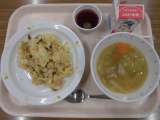(今日の献立) ・山菜ピラフ ・白いんげんの田舎風スープ ・ぶどうゼリー ...