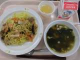 (今日の献立) ・あんかけやきそば ・わかめスープ ・ももとりんごのゼリー...