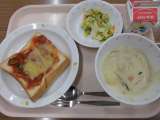 (今日の献立) ・ピザトースト ・クリームシチュー ・コーンサラダ ・牛...