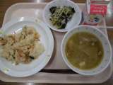 (今日の献立) ・たけのこごはん ・呉汁 ・ししゃものからあげ ・牛乳 ...