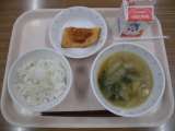 (今日の献立) ・わかめじゃこごはん ・ジャンボぎょうざ ・塩ナムル ・...
