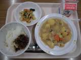 (今日の献立) ・ごはん ・かみかみ佃煮 ・新じゃがいものそぼろ煮 ・野...
