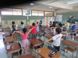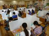 左は図書室、右は図工室の様子です。両方の教室とも机を囲んで座る形です。子どもた...