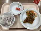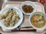 (今日の献立) ・鶏五目ごはん ・豚汁 ・大豆とじゃこの甘辛揚げ ・牛乳...