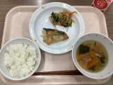 (今日の献立) ・ごはん ・沢煮椀 ・さばのみそ漬け焼き ・野菜のごま和...