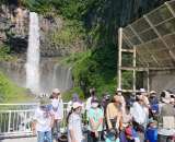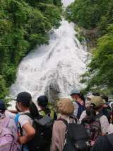 湯滝に到着。華厳の滝に負けず劣らずすごい水量です。