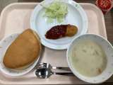 (今日の献立) ・セルフフィッシュサンド ・コーンチャウダー ・牛乳 ...