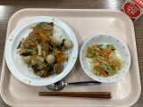 (今日の献立) ・豚肉のごまみそ丼 ・パリパリれんこんサラダ ・牛乳 ...