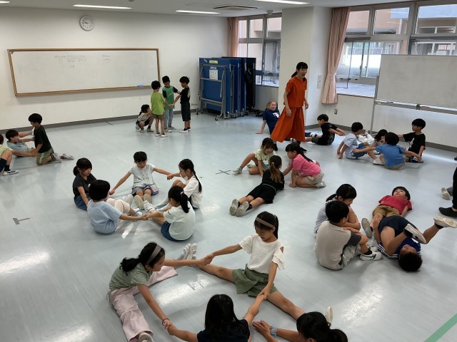 最後には、5人組で植物が種から枯れるまでの様子を協力して表現していました。