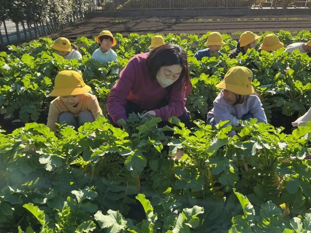 様々な大根の種類を紹介していただいたり、大根を実際に切ってもらい中の色を当てるクイズをしたりと楽しく学ぶことができました。