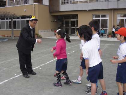 今朝は集会委員会の児童が企画したゲーム集会がありました。友達や先生とじゃんけんをして勝ち進み、最後は校長先生や副校長先生と対戦するその名も「関所破り」。