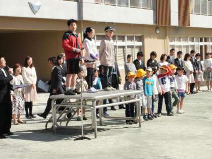 始業式の校長からは、「学習、生活の目標を定めて頑張りましょう」「皆で仲良くし、友達を多くしましょう」「返事、あいさつ、後始末をしっかりとやりましょう」という話をしました。