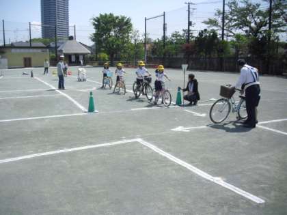 成城署のお巡りさんから、自転車の乗り方を教えていただきました。