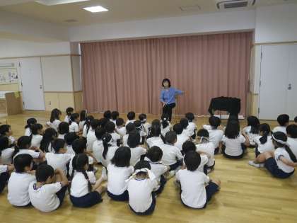 3組と4組は合同でランチルームでお話を聞きました。