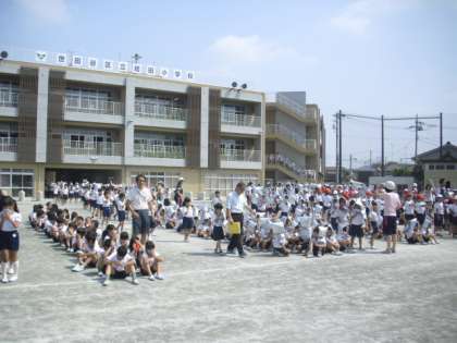 「地震が発生し、近隣の火事のため校庭に避難する」という想定で行いました。