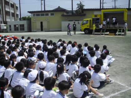 また、今日は、区から起震車にきてもらい、6年生が震度7までの地震体験をしました。