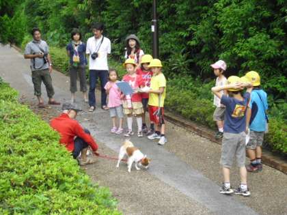 3〜5名の班に分かれ、保護者のボランティアの皆様が付き添いや助言をしてくれました。