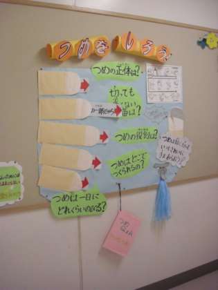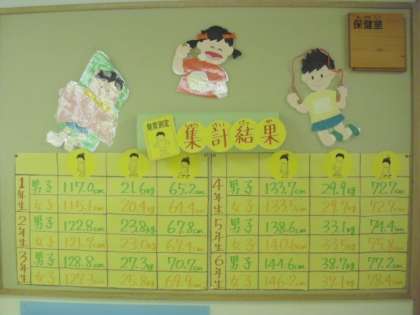 発育測定の結果、むし歯の話、爪のこと。どれも分かりやすく掲示しています。