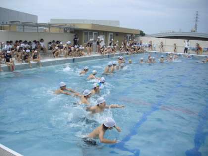 各学級の児童代表が今年度のプールでの目標を発表し、早速、水泳の学習を進めました。