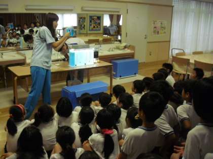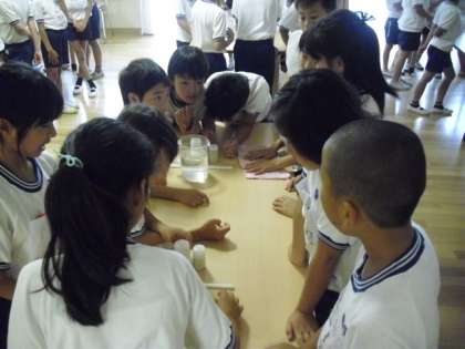 7月3日(水)1〜4校時、4年生は、東京都水道局の水道キャラバンの出張授業を行いました。水道水がきれいにできるまでを体験的に学びました。
