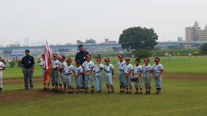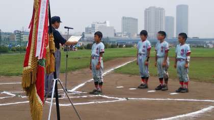 7月14日(日)二子玉川のグランドにて、世田谷区の少年野球(4年生以下)の決勝戦が行われました。