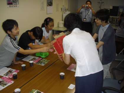 7月25日(木)6年生代表児童が募金活動で集めた51706円を世田谷区社会福祉協議会・烏山地域事務所で、「福島の子どもたちとともに・世田谷区の会」の代表の方へお渡ししました。