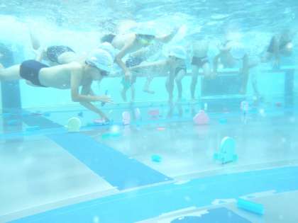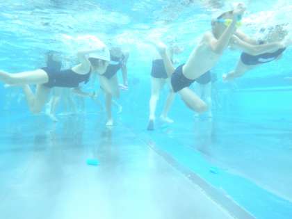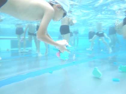 1・2年生は「水中宝さがし」をして大盛り上がり!