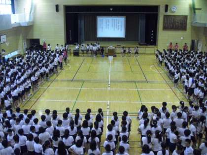 5年生の「タイムトラベル」の合唱の発表と、「いつでもあの海は」の全員合唱でした。