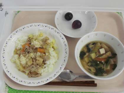 9/19 本日の給食 公開日 2013/09/22 更新日 2013/09/22 給食 献立は、【あんかけチャーハン、豆腐汁、くだもの(巨峰)、牛乳】です。あんかけチャーハンのあんには、たけのこ、にんじん、ぶた肉、だいこん、しいたけなどのたくさんの野菜が入っています。 いいね(0)